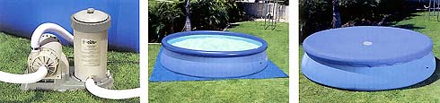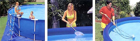 - Борта бассейна поддерживаются надувным кольцом, которое, по мере заполнения бассейна, поднимается вместе с уровнем воды, расправляя стенки.